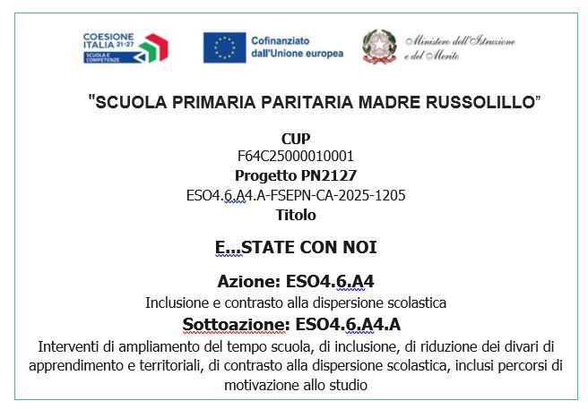 "SCUOLA PRIMARIA PARITARIA MADRE RUSSOLILLO” PARTECIPA AL PROGETTO PON PN2127 ESO4.6.A4.A-FSEPN-CA-2025-1205